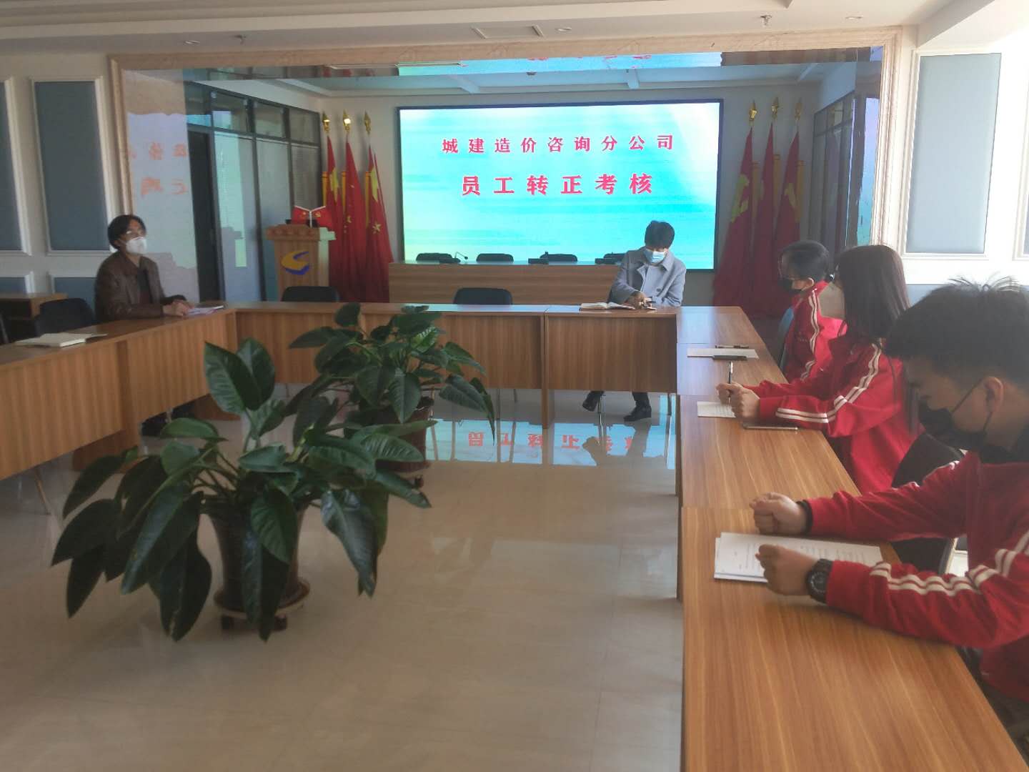 2020年3月27日,在公司會(huì)議室舉行了城建新員工轉(zhuǎn)正考核,本次共有4位新同事參加轉(zhuǎn)正考核,分別為造價(jià)分公司的常生、左會(huì)芳、張雙、張興兵。