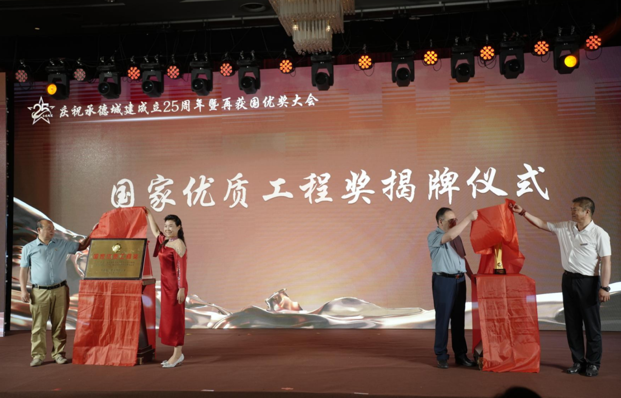 慶典中,當(dāng)火紅的緞帶被揭開,露出“國家優(yōu)質(zhì)工程獎”金燦燦的獎牌和獎杯,在一片歡騰聲中,承德城建獲得的第六項國家級大獎?wù)故驹谌藗兠媲?/strong>。