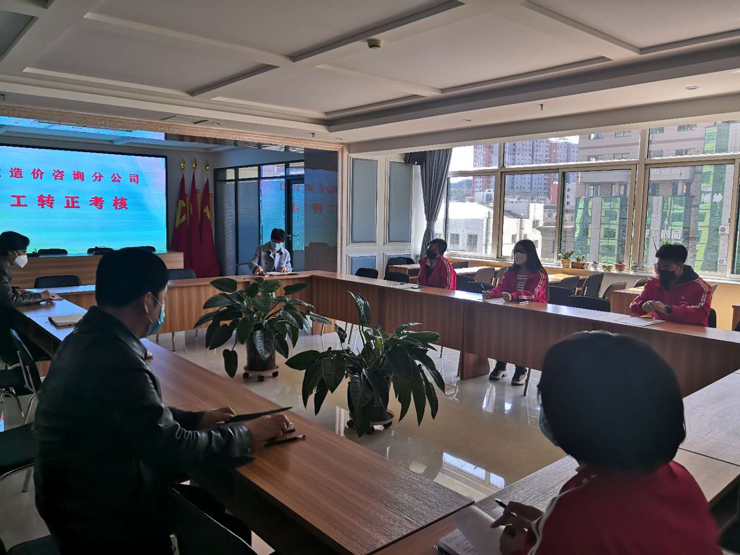 2020年3月27日,在公司會(huì)議室舉行了城建新員工轉(zhuǎn)正考核,本次共有4位新同事參加轉(zhuǎn)正考核,分別為造價(jià)分公司的常生、左會(huì)芳、張雙、張興兵。
